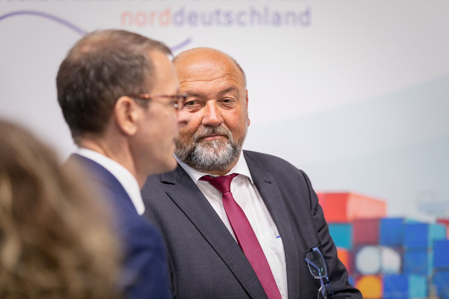 Am 5. September 2018 empfing das Maritime Cluster Norddeutschland wirtschaftspolitische Vertreter der fünf norddeutschen Bundesländer und präsentierte aktuelle Innovationsprojekte. Der Vorsitzende Dominik Eisenbeis und Geschäftsführerin Jessica Wegener begrüßten am MCN-Messestand Bremens Wirtschaftssenator Martin Günthner, Hamburgs Wirtschaftssenator Frank Horch, Mecklenburg-Vorpommerns Wirtschaftsminister Harry Glawe, Niedersachsens Staatssekretär Dr. Berend Lindner sowie Schleswig-Holsteins Staatssekretär Dr. Thilo Rohlfs.
