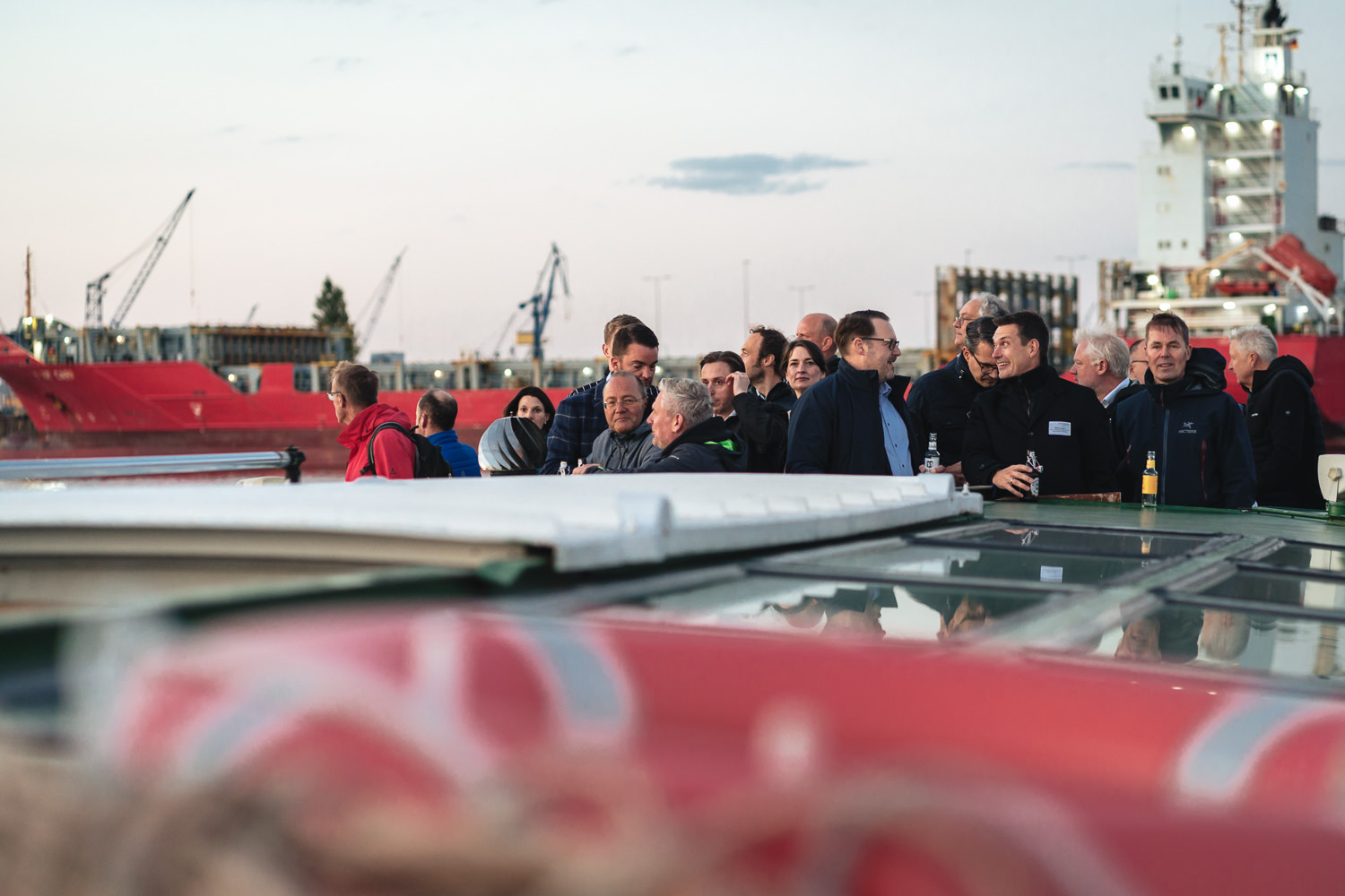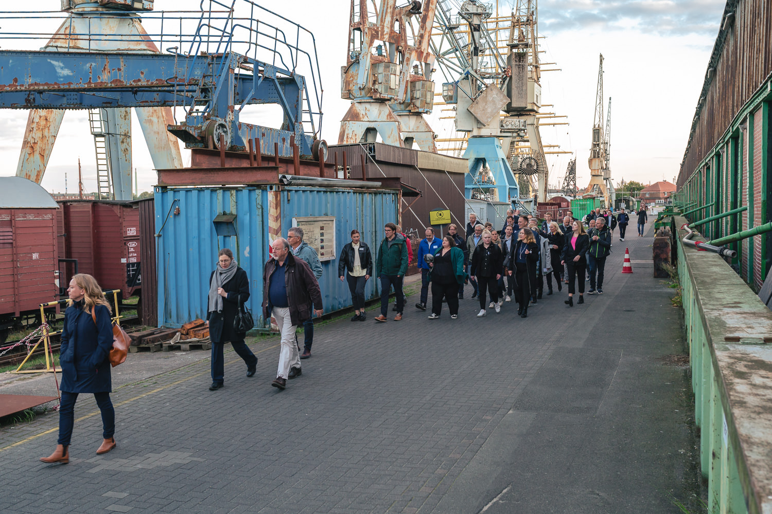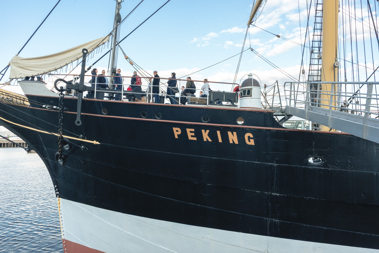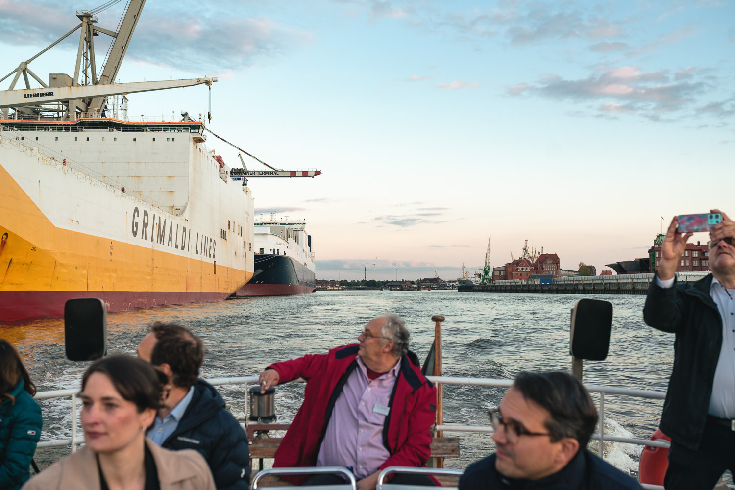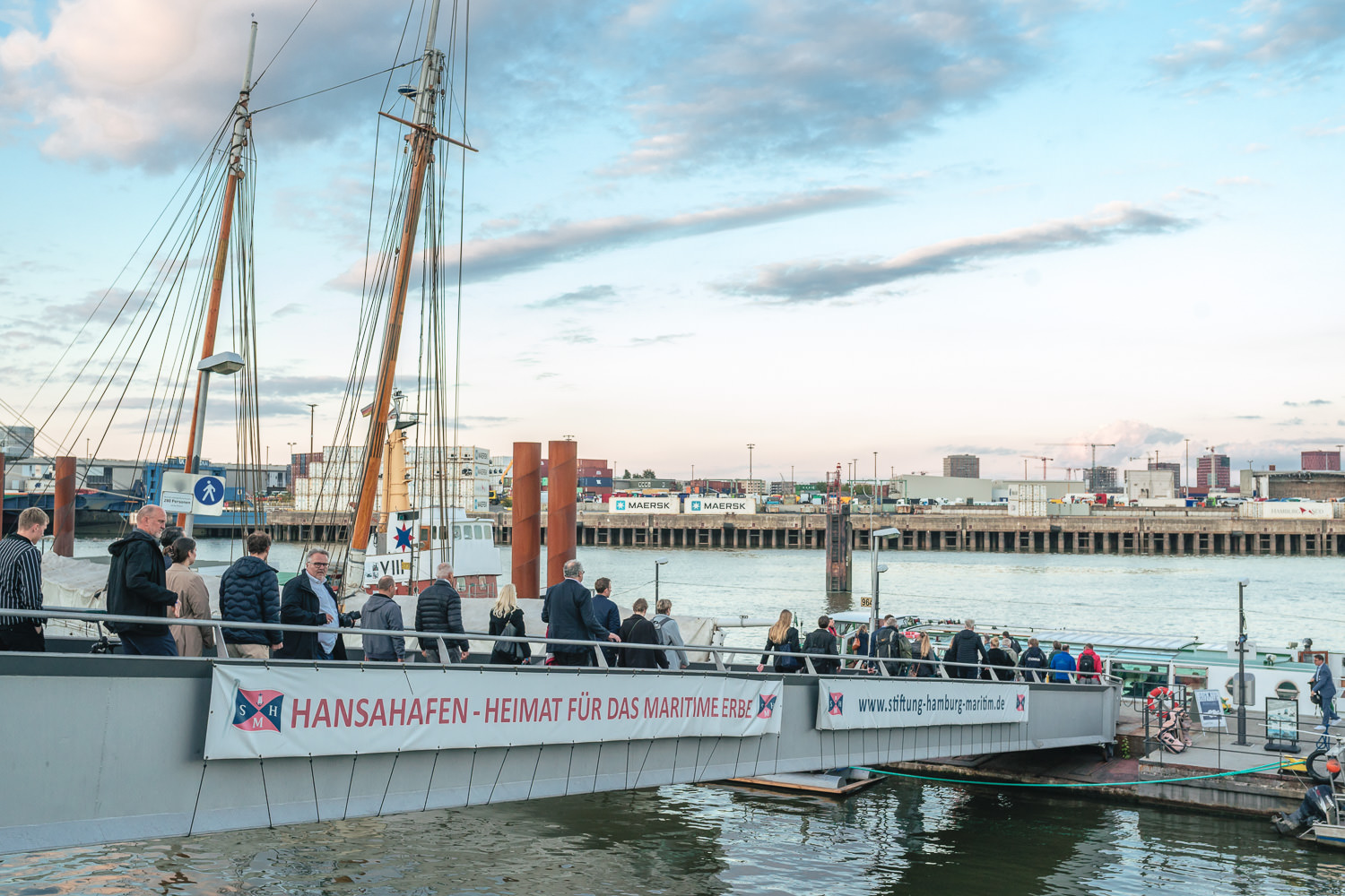Nach der Versammlung im historischen Schuppen 50A nutzten die Teilnehmenden die Gelegenheit zum Austausch beim anschließenden Mitgliedertreffen. Das Deutsche Hafenmuseum bot dafür eine besondere Kulisse: Kurzführungen durch die Ausstellung und zu den Museumschiffen – darunter die imposante Viermastbark PEKING – vermittelten eindrucksvolle Einblicke in die maritime Geschichte. Abgerundet wurde das Programm durch eine moderierte Barkassenrundfahrt im Hamburger Hafen, die Gelegenheit bot, das maritime Umfeld der Hansestadt aus einer anderen Perspektive zu erleben.