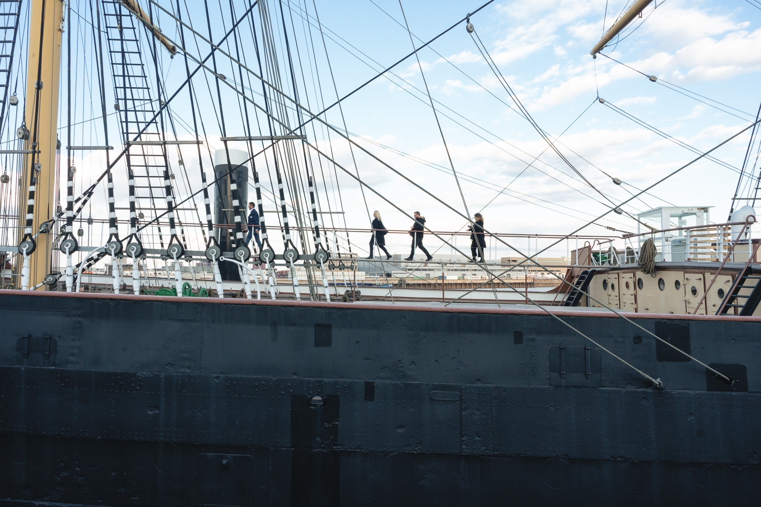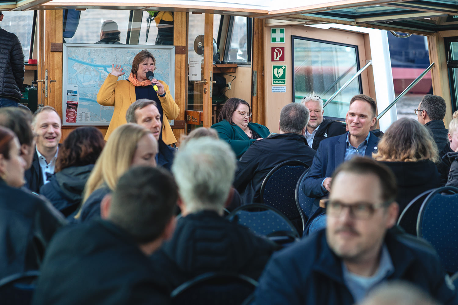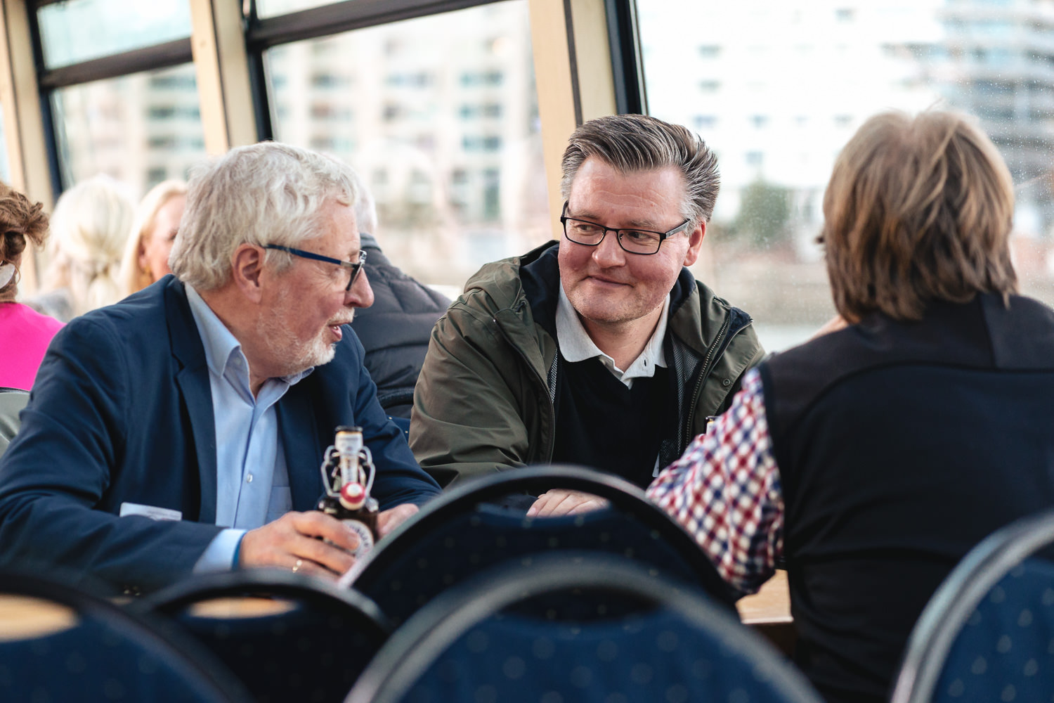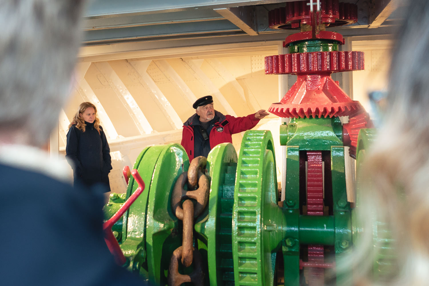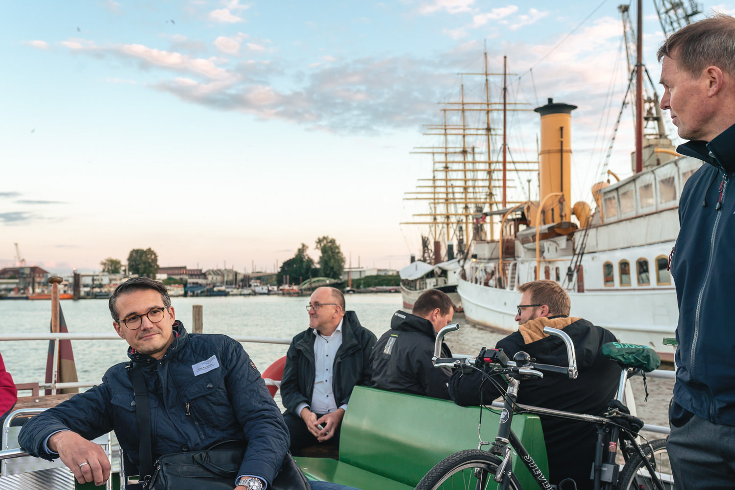 Nach der Versammlung im historischen Schuppen 50A nutzten die Teilnehmenden die Gelegenheit zum Austausch beim anschließenden Mitgliedertreffen. Das Deutsche Hafenmuseum bot dafür eine besondere Kulisse: Kurzführungen durch die Ausstellung und zu den Museumschiffen – darunter die imposante Viermastbark PEKING – vermittelten eindrucksvolle Einblicke in die maritime Geschichte. Abgerundet wurde das Programm durch eine moderierte Barkassenrundfahrt im Hamburger Hafen, die Gelegenheit bot, das maritime Umfeld der Hansestadt aus einer anderen Perspektive zu erleben.