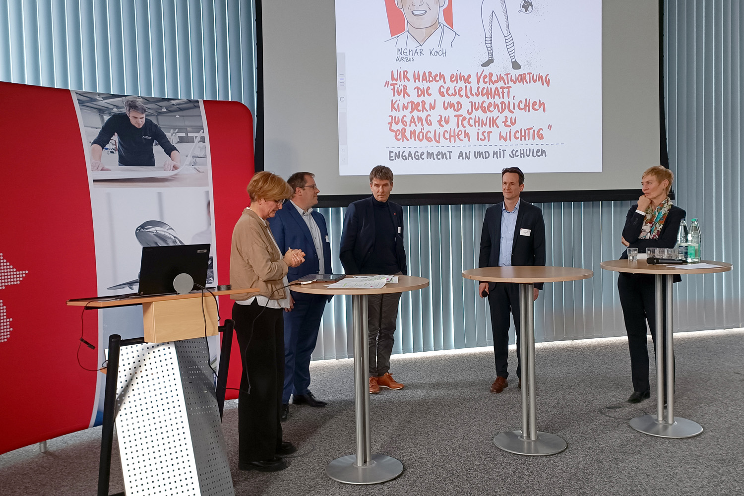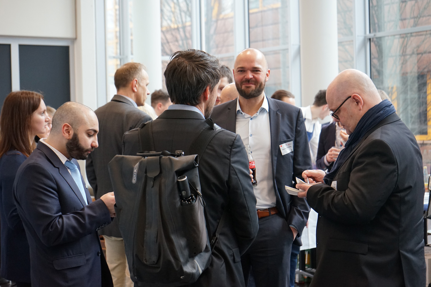 Die anschließende Podiumsdiskussion setzte sich aus Vertreterinnen und Vertretern aus Unternehmen der unterschiedlichen Branchen zusammen, die sich angeregt über Herausforderungen und Lösungsansätze innerhalb der jeweiligen Branche und Kooperationsmöglichkeiten zwischen den Branchen austauschten.