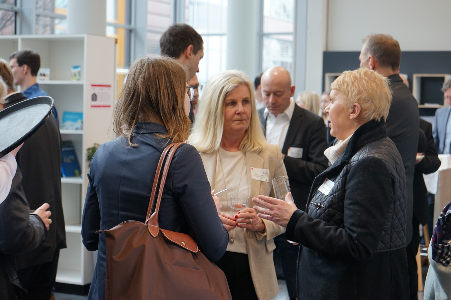 Prof. Dr. Simone Kauffeld von der Technischen Universität Braunschweig gab anschließend in ihrem Vortrag Impulse für die vertiefende Diskussion in Arbeitsgruppen an verschiedenen Thementischen. Diese nutzten die Teilnehmenden für aktive Diskussionen und Kooperationsanbahnungen. Im Fokus standen verschieden Fragstellungen, wie zum Beispiel, wie man Kinder und junge Menschen für Technik und technische Berufe begeistern kann und wie man Fach- und Nachwuchskräfte in strukturschwache Regionen „locken“ und dort halten kann. Außerdem wurde besprochen, wie sich der bedarfsgerechte Personaltransfer zwischen Unternehmen/Branchen erfolgreich gestalten lässt und wie Unternehmen Mitarbeitende mit den richtigen Kompetenzen finden können und wie die Mitarbeiterentwicklung erfolgreich sein kann.