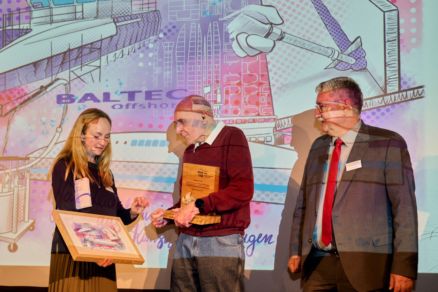 Als Gewinnerin in der Kategorie „Konzept“ wurde die BALTEC Offshore GmbH geehrt. Das Lübecker Unternehmen arbeitet an innovativen Lösungen im Leichtbau von Schiffen mit kostengünstigen und zugleich feuerhemmenden Sandwichplatten aus neuartigen Verbundwerkstoffen. Nominiert waren hier außerdem die Hamburger Hoppe Marine GmbH für eine automatische Schiffstrimoptimierung sowie die MolAquaTech GmbH aus Schkopau mit einem neuartigen Konzept zur Wasseraufbereitung.