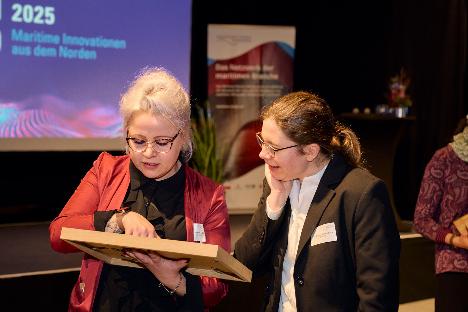 Nominierte und Preisträger:innen waren von einer hochkarätig besetzten Fachjury aus 44 Einreichungen ausgewählt worden. „Die hohe Anzahl, vor allem aber die überragende Qualität vieler Einreichungen zeigt, dass die maritime Branche angesichts großer transformativer Herausforderungen mit Kompetenz, Innovationskraft und Motivation nach vorne geht“, unterstrich MCN-Geschäftsführerin Jessica Wegener, die gemeinsam mit Joshua Wygand vom HANSA International Maritime Journal durch die Veranstaltung im Lankenauer Höft in Bremen führte. In ihrem Impulsvortrag „Digitale Nachhaltigkeit in Zeiten von KI“ empfahl Anita Schüttler, Head of Sustainability bei neuland und Co-Vorsitzende des Bundesverbands Green Software, angesichts des hohen und weiter wachsenden Energieverbrauchs durch die Künstliche Intelligenz, diese sehr gezielt und bewusst einzusetzen: „Im Optimum in Bereichen, die die Nachhaltigkeit steigern“. Im Anschluss an die Preisverleihung mit rund 120 Teilnehmenden fand ein Netzwerktreffen mit einer Ausstellung der eingereichten Innovationen sowie der unterstützenden Unternehmen und Projekte statt.